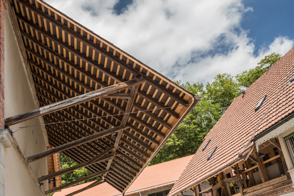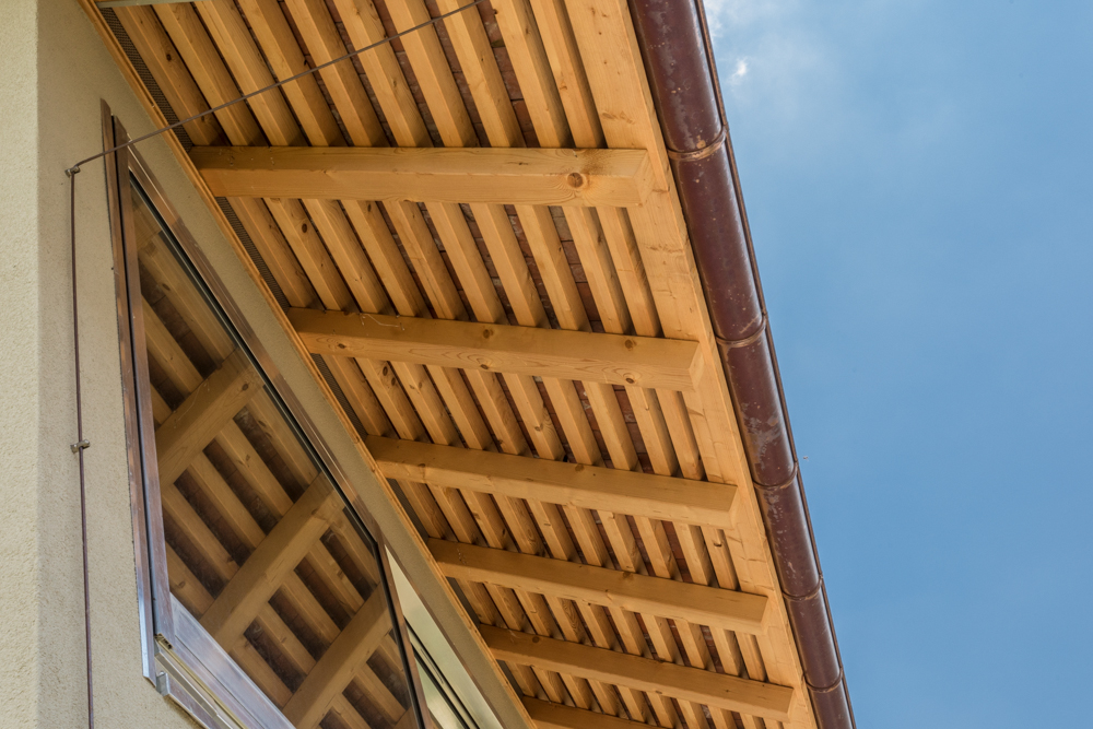 | Toiture: | Plafonds en lames bois et couverture petites tuiles MORANDI |